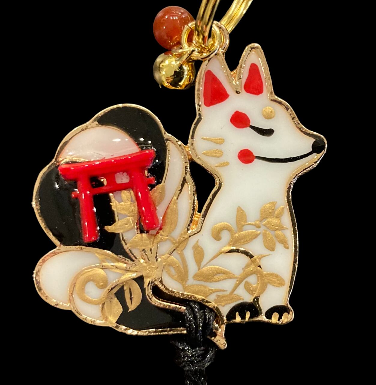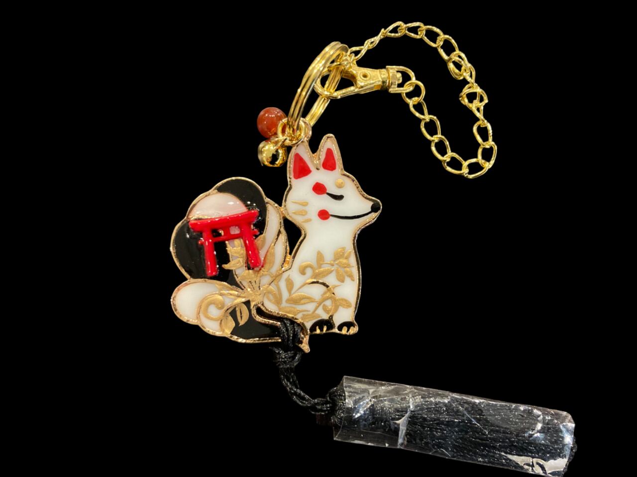 その2匹の狐が パワーストーンや鳥居のシンボル、邪気を払う鈴をまとい、デザイナーmasuramiの絵付けによって命を吹き込まれ、美しく可愛らしい御守りとして誕生しました。
