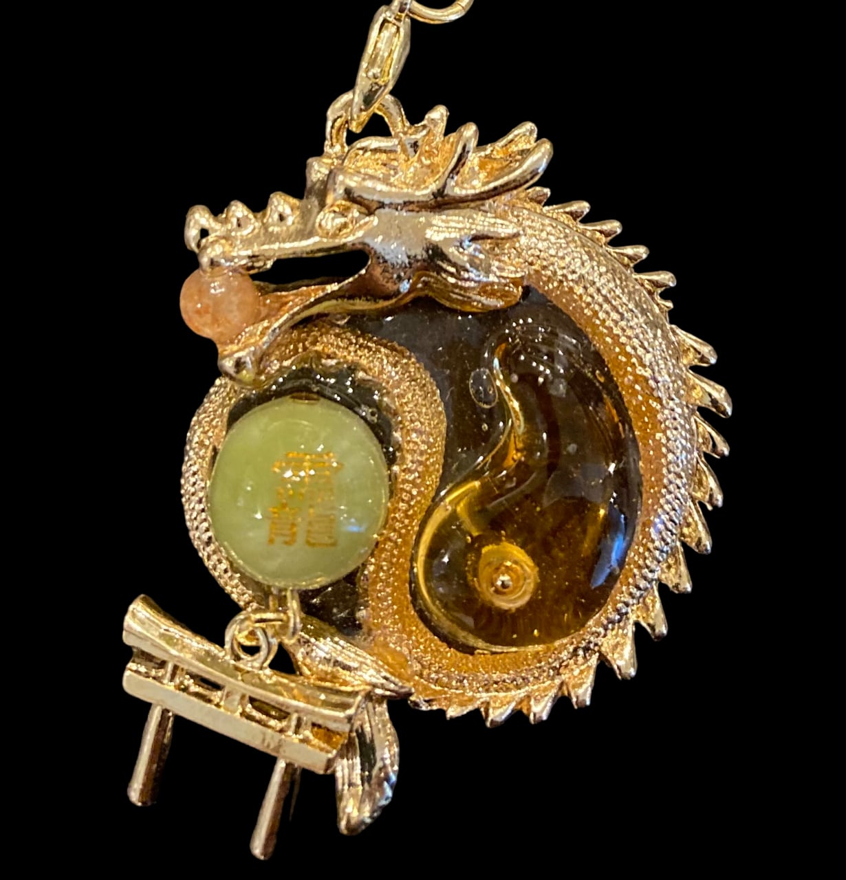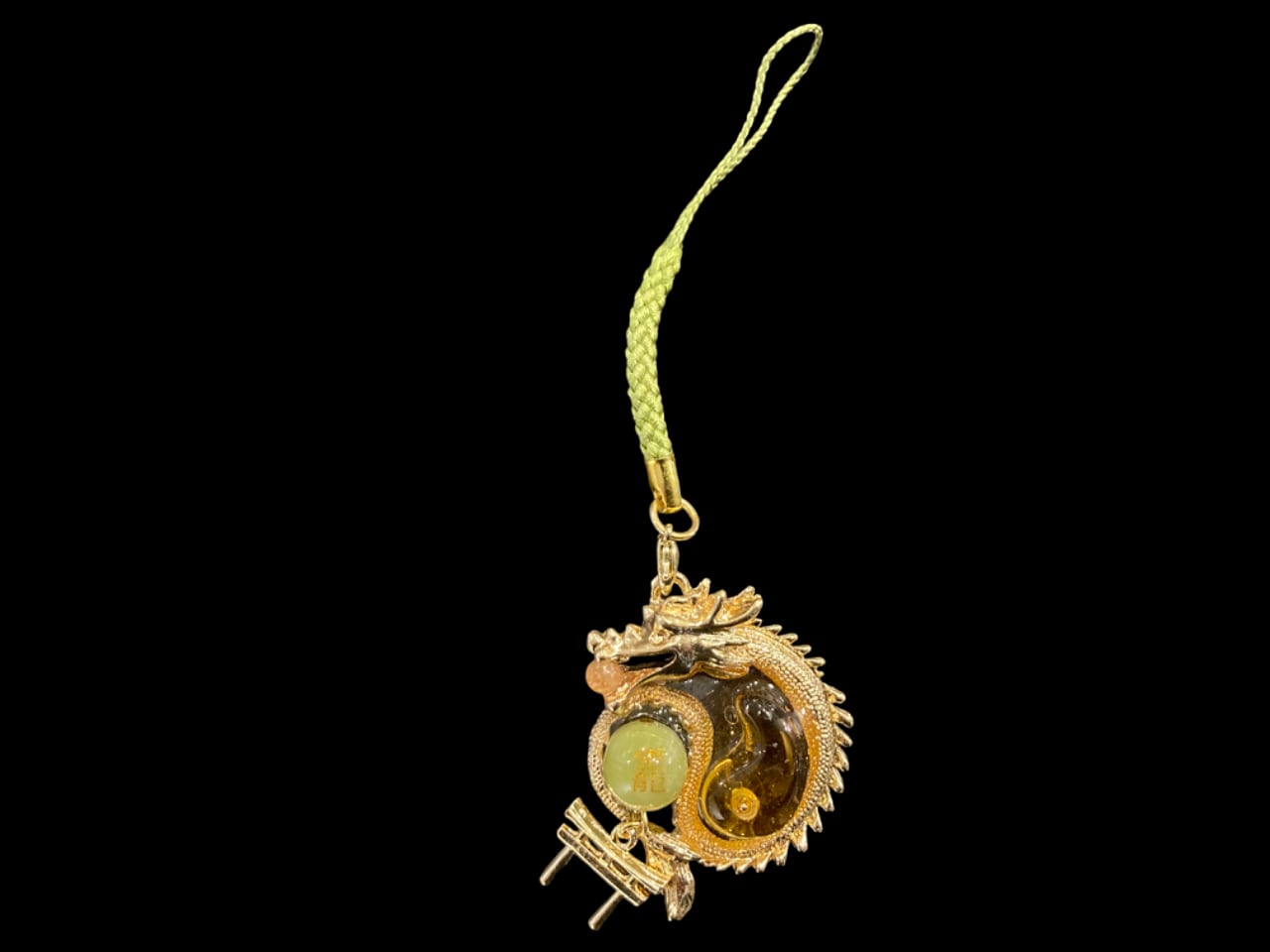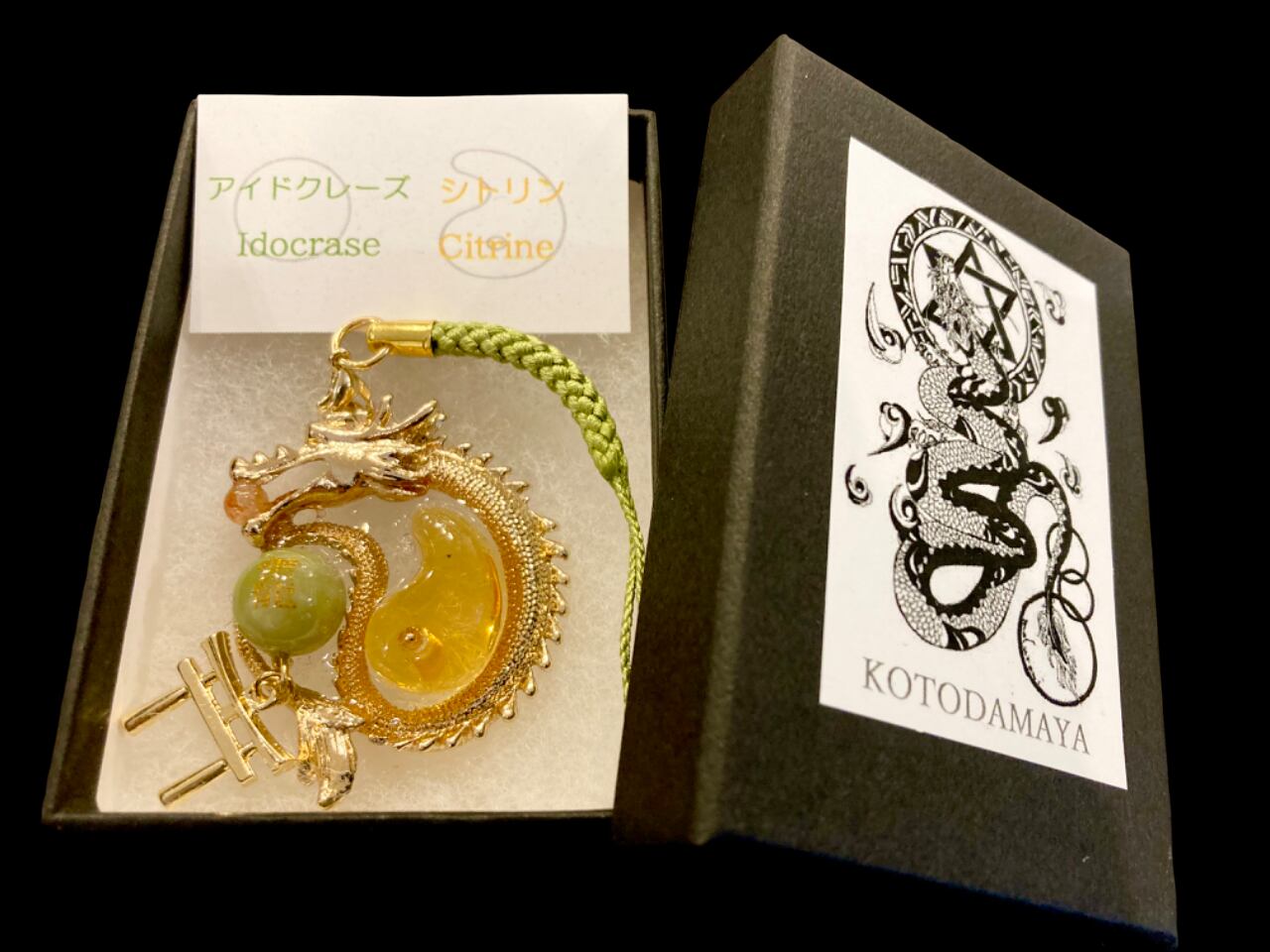Ryu-No,2 龍神の御守り石 ゴールド 天然石:アイドクレーズ&シトリン&サンストーン付き 龍ストラップ 龍お守り dragon charm dragon god charm