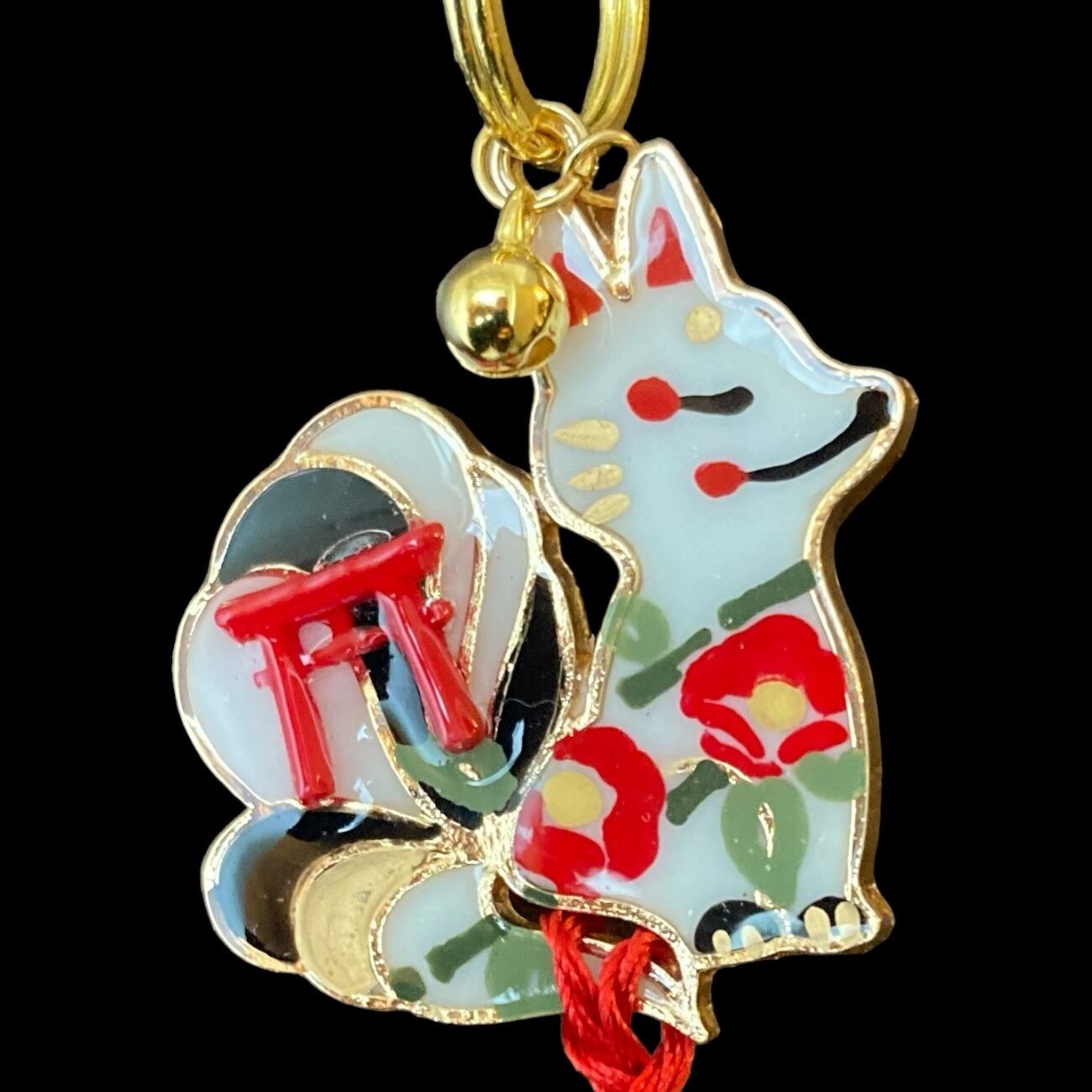 その2匹の狐が パワーストーンや鳥居のシンボル、邪気を払う鈴をまとい、デザイナーmasuramiの絵付けによって命を吹き込まれ、美しく可愛らしい御守りとして誕生しました。