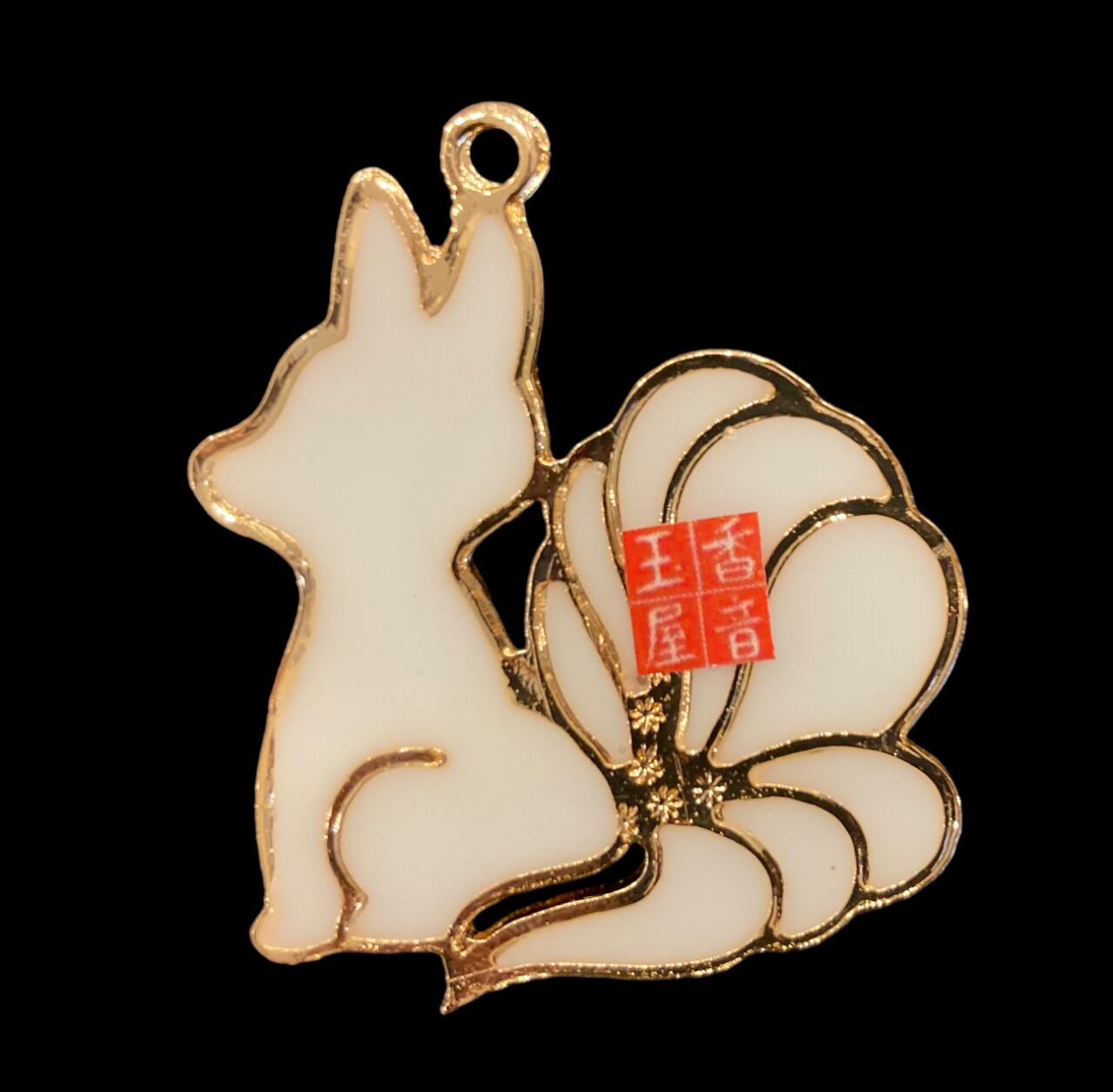 No,50 子天狐守り 白 キツネのお守り 天然石・赤メノウ付き デザイナーmasuramiの手描きレジン作品 Handmade fox charm きつねのお守り 京都お守りチャーム
